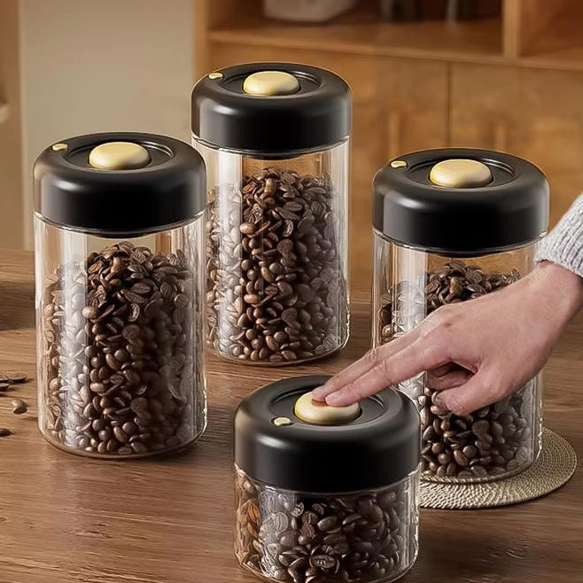 Glass Vacuum Sealed Jar for Coffee Beans Food Grade Storage Container for Coffee and Tea