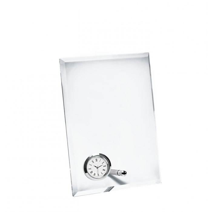 Glass Wall Clock Vertical 140x190x10mm With Silver Dial And Roman Numerals