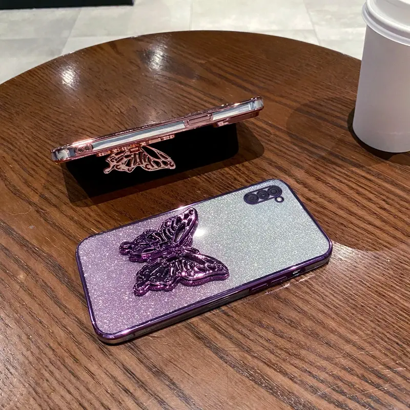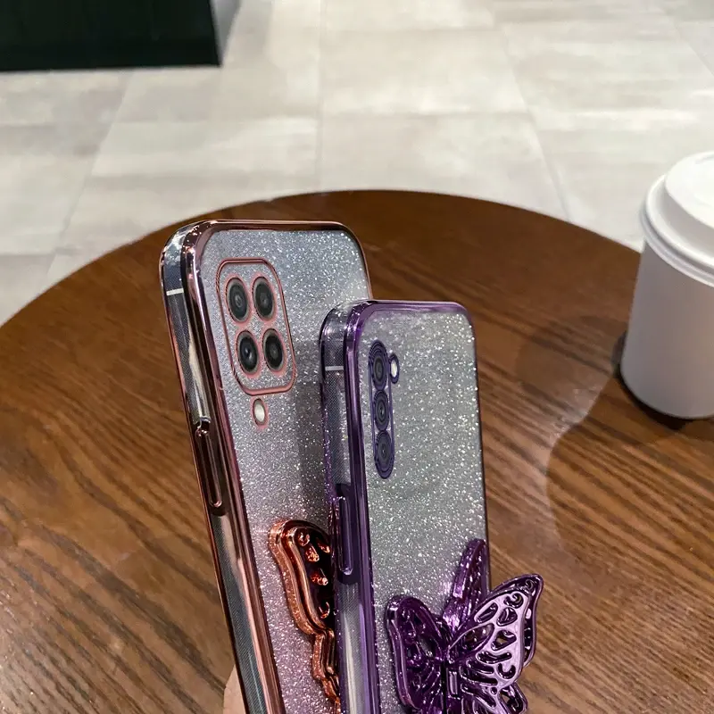 Custodia per telefono con farfalla glitterata per Samsung Galaxy A05S A02S A03S A04 A11 A12 A20 A21S A30 A31 A50 A70 A750