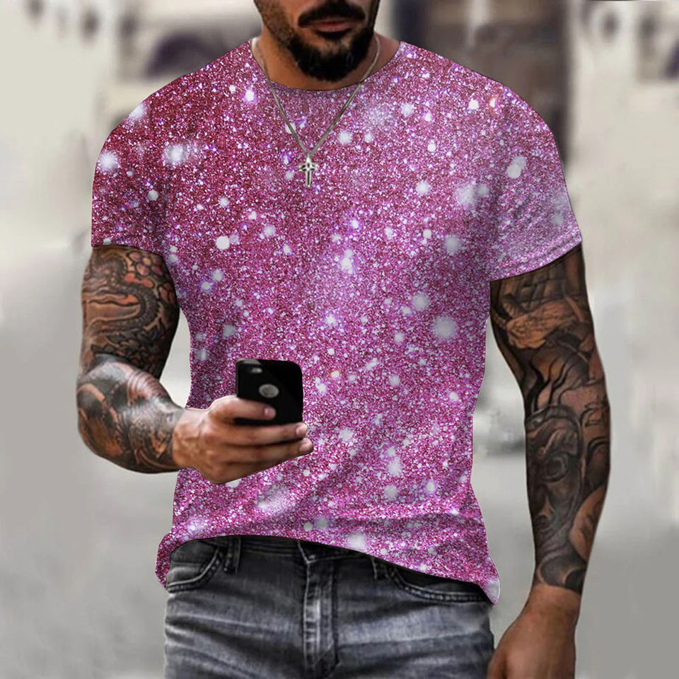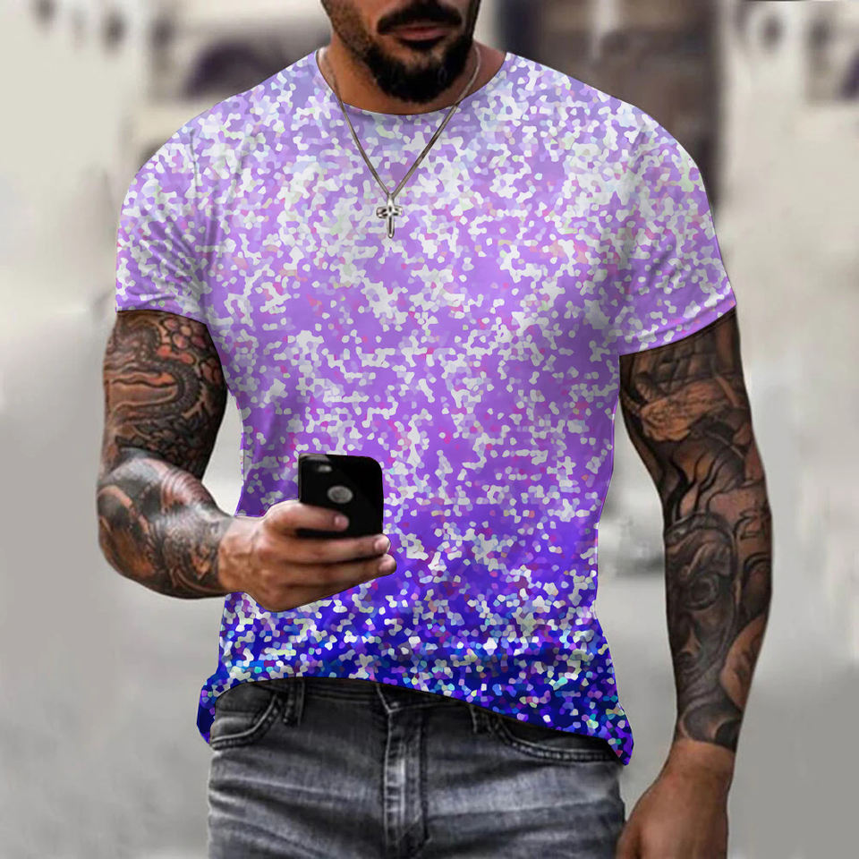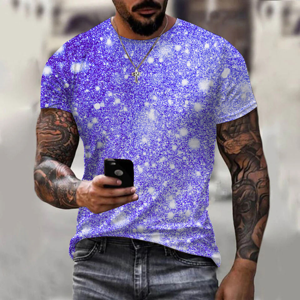 T-shirt da uomo estiva con stampa 3D glitterata, taglie forti, stampa all-over, OEM e ODM