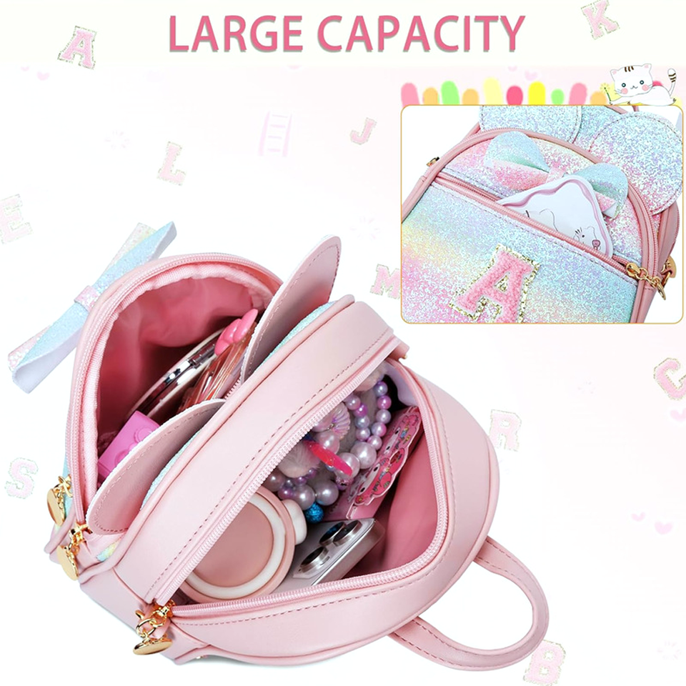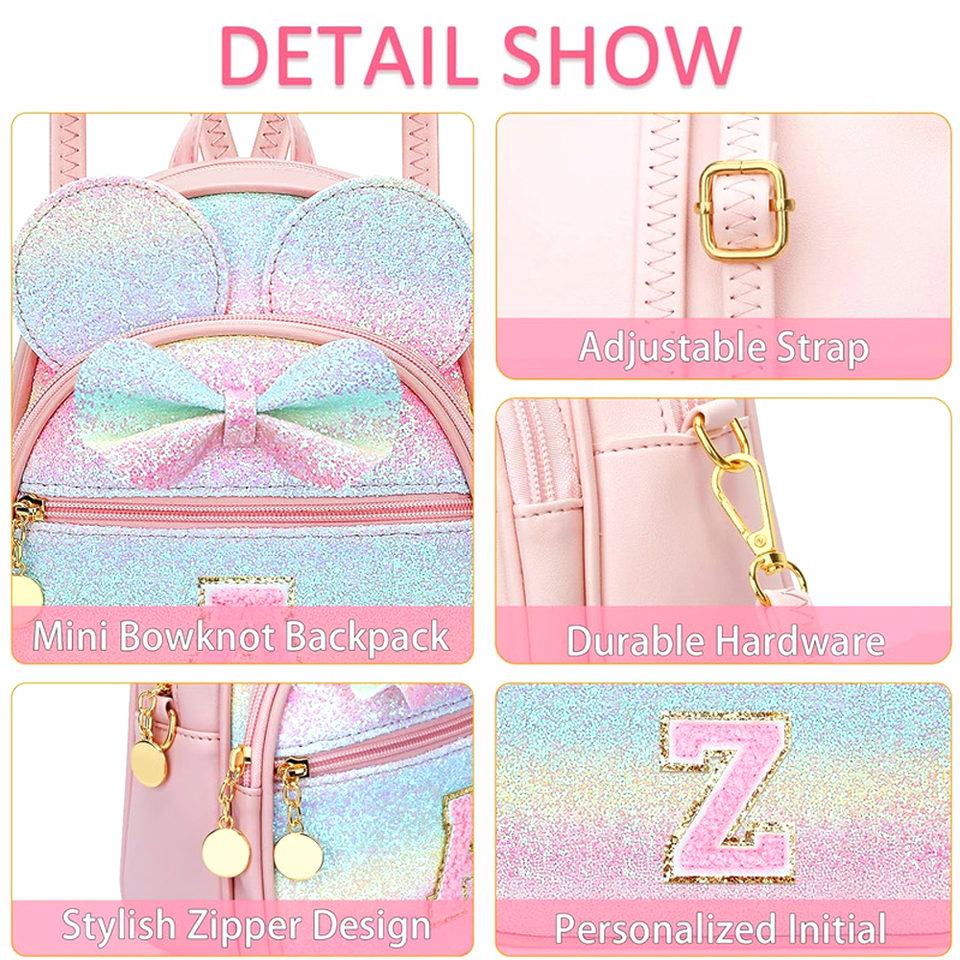 Glitter Rainbow Bow Mini Backpack Personalized Initial Mochila Infantil Lentejuelas Borsa Bambina Zaino Con Fiocco Per Ragazze