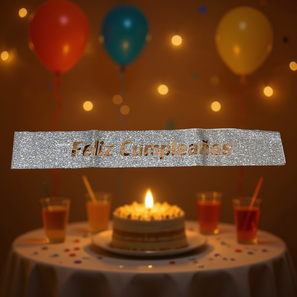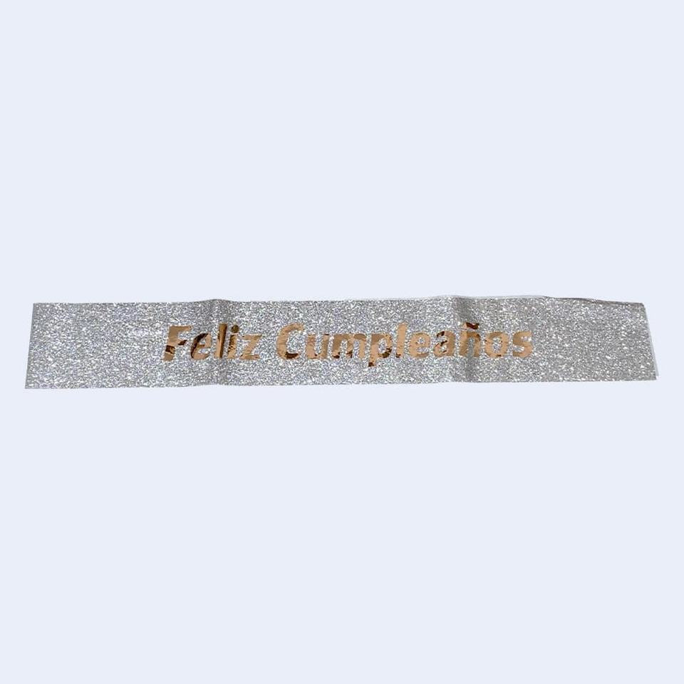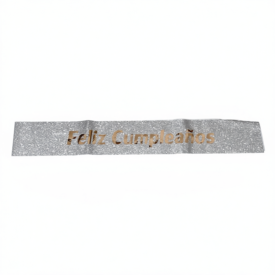 Fascia Decorativa 'Happy Birthday' Argento Glitterato con Lettere Iridescenti, Elegante Decorazione per Feste