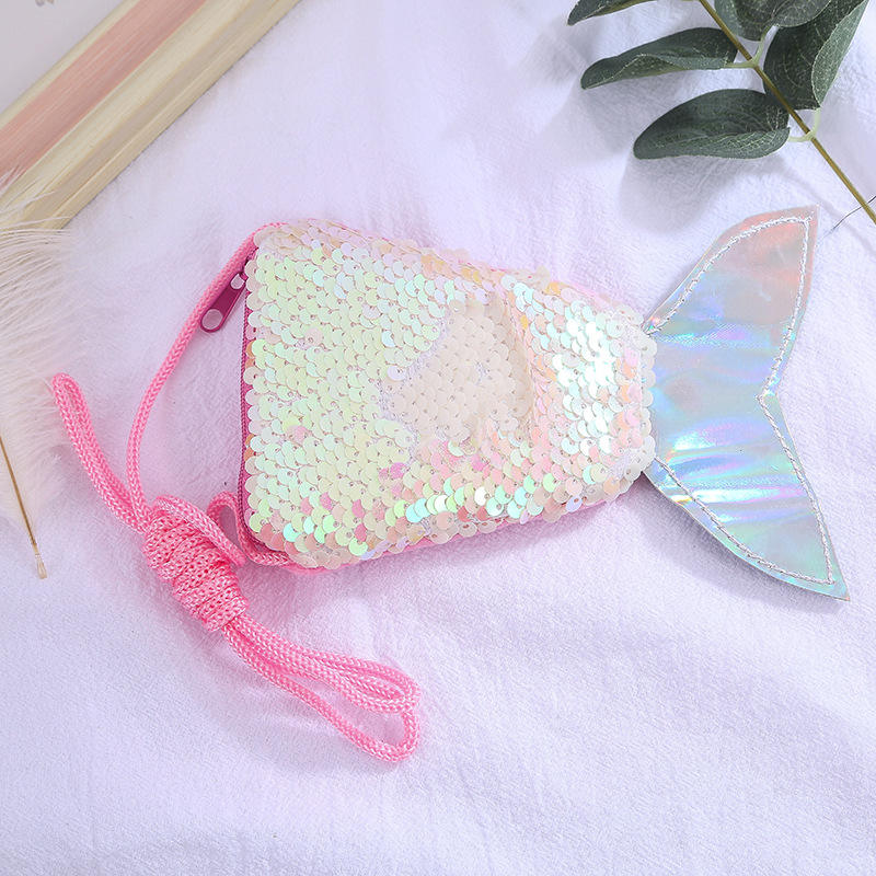 Glittering Mermaid Tail Coin Purse Mermaid Tail Sequin Crossbody Coin Wallet Bags for Kids Little Girls Party Birthday Gifts