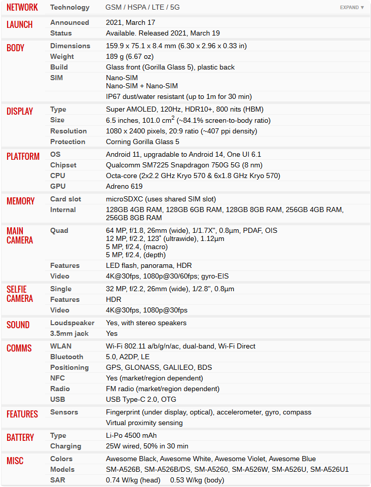 Global Hot Selling Second-hand Mobile Phone for Samsung A52 5G with 4500mAh Battery 25W Fast Charging IP67 Water Resistant Cheap