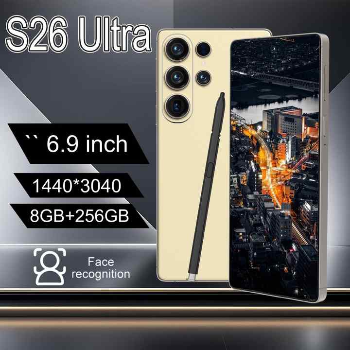 Nuovo Smartphone Globale S26 Ultra 5G, 8GB RAM, 256GB Memoria, Fotocamera, Sbloccato, Telefono Android con Face ID, Impronta Digitale, Dual SIM