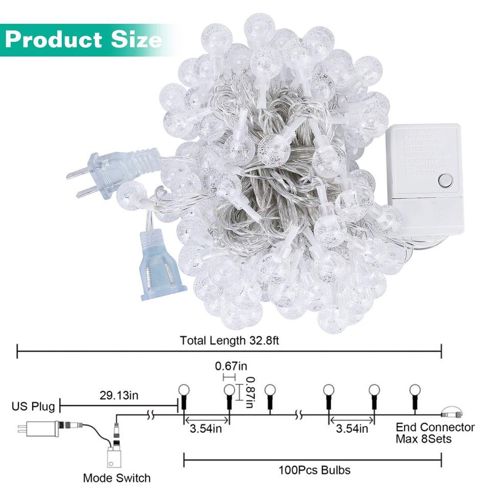 Luci a stringa LED a sfera da 100 palline, impermeabili IP44, luci fatate IP44, catene luminose a LED