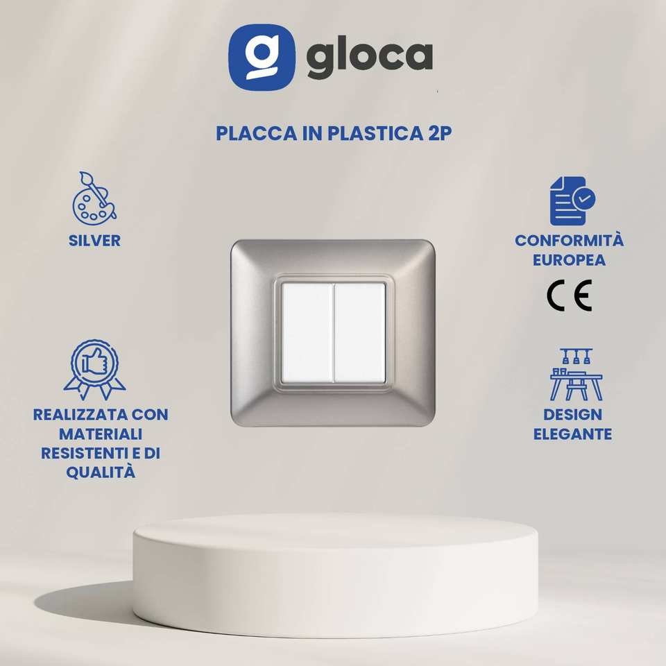 Interruttore a Muro Gloca a 2 Vie con Placca in Plastica Argento, Facile Installazione, Compatibile con Matix