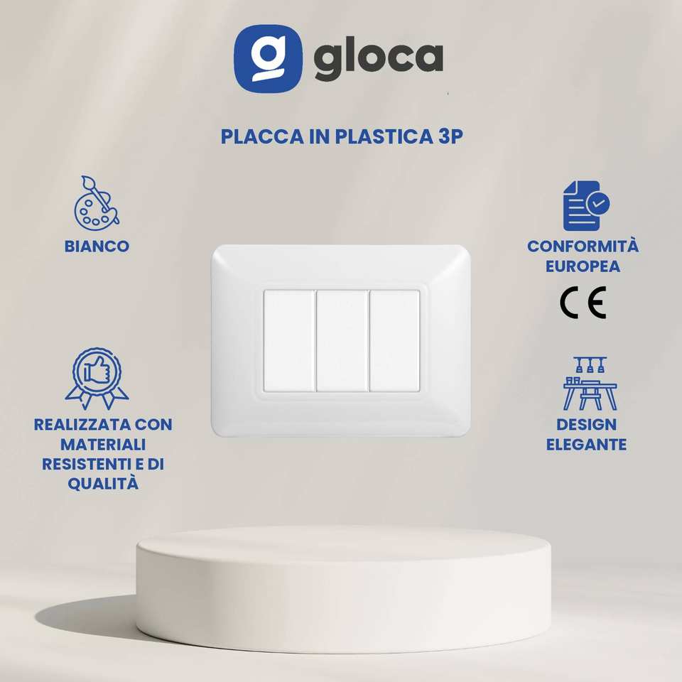 Placca in plastica per interruttore a parete Gloca 3 Gang 3P bianca, facile installazione, compatibile con Matix