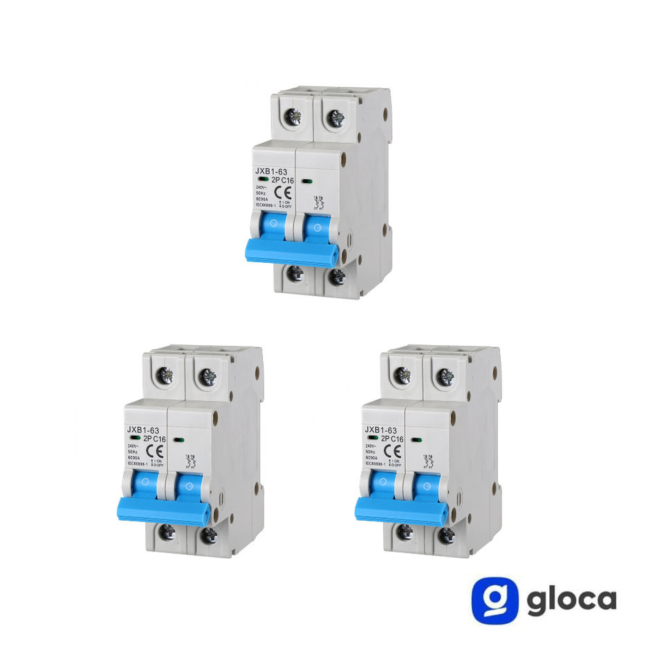 Gloca Automatic Magnetothermic Switch JXB1-63 2P 16A 220V C16 DIN Mount Circuit Breaker Set Of 3