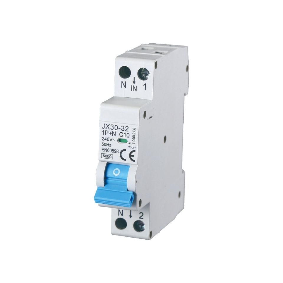 Interruttore Automatico Gloca JX30 1P+N C10 10A 240V 50Hz Montaggio DIN 6000A EN60898