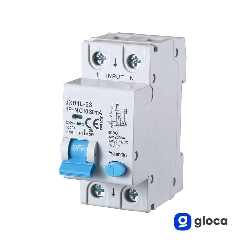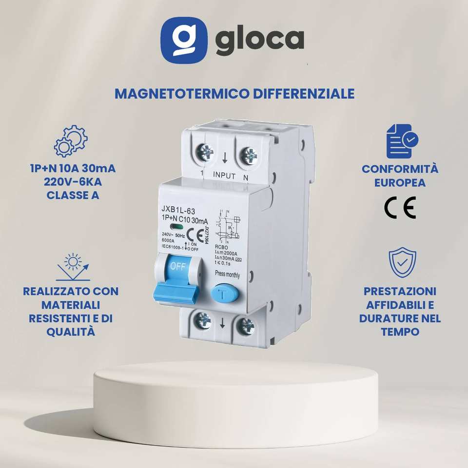 Interruttore Differenziale Gloca 1P+N C10 30mA 220V 6kA RCBO Classe A Montaggio DIN