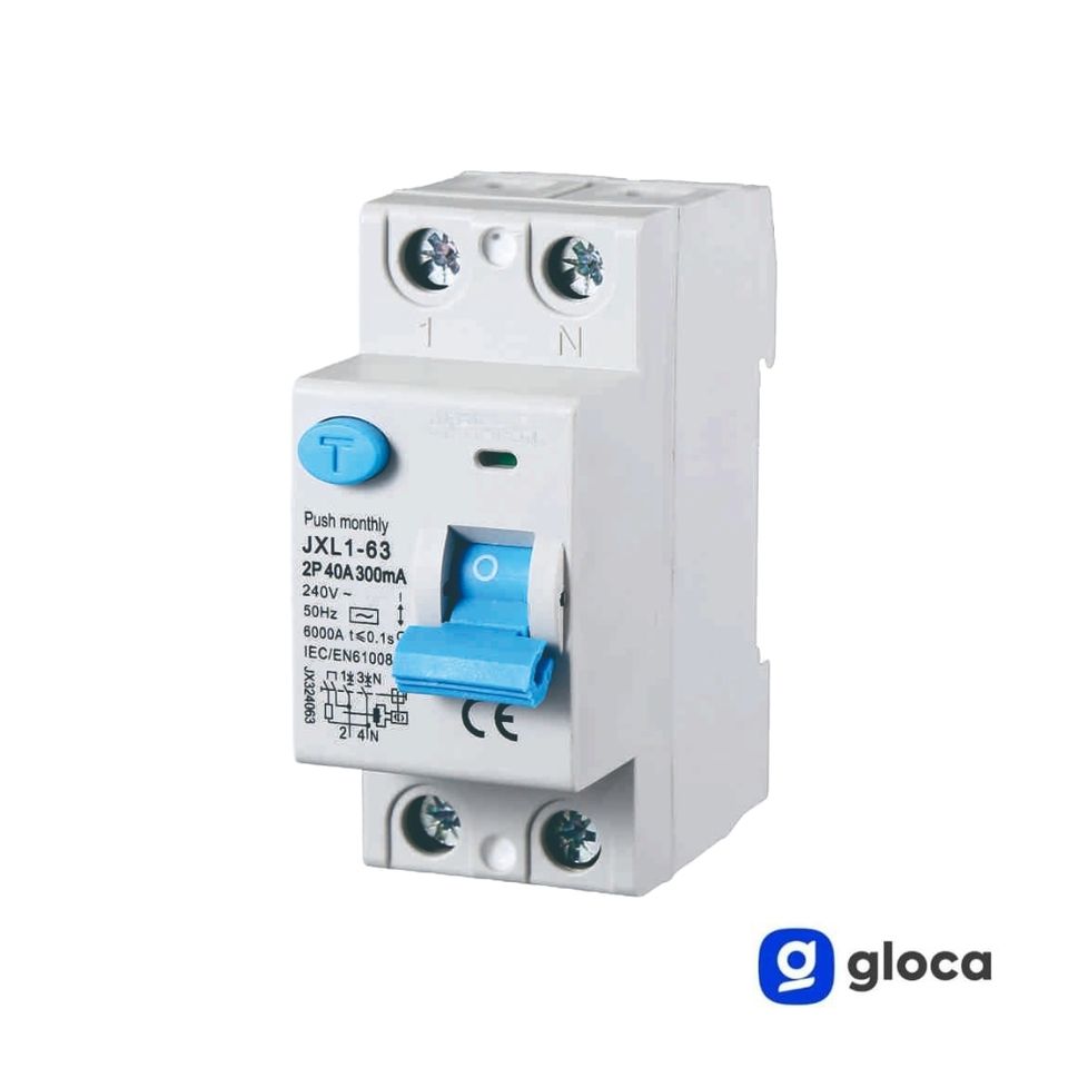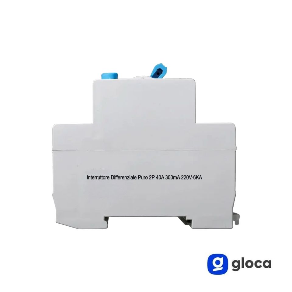 Interruttore Differenziale Gloca 2P 40A 300mA 250V 50Hz Classe A 2 Moduli DIN per Distribuzione di Energia
