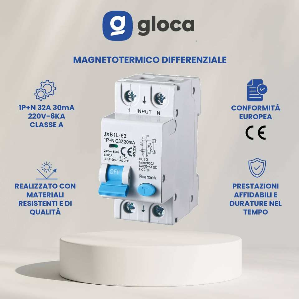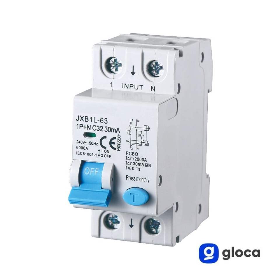 Interruttore Differenziale Gloca JXB1L-63 1P+N C32 30mA 6kA RCBO Montaggio DIN