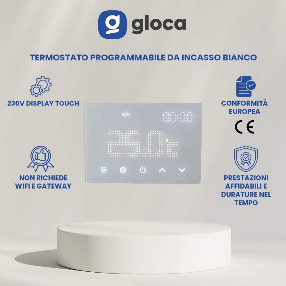 Gloca Programmable Flush Mounted Thermostat 230V Touch Display White Home Hvac System