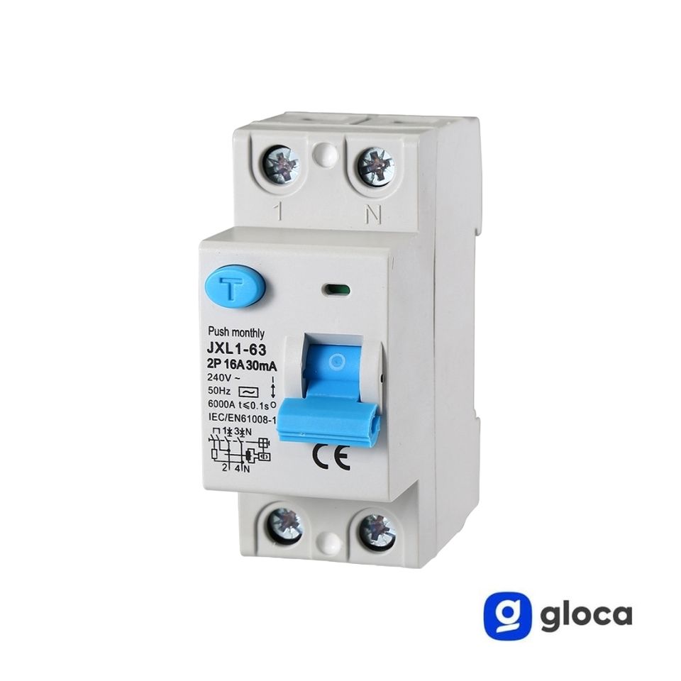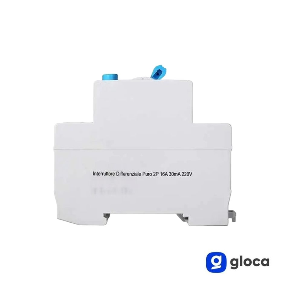 Gloca Pure Differential Switch Life Saving 2P 16A 30mA 220V-6KA CLASS 2 DIN Modules Industrial Button Switch Metal Plastic