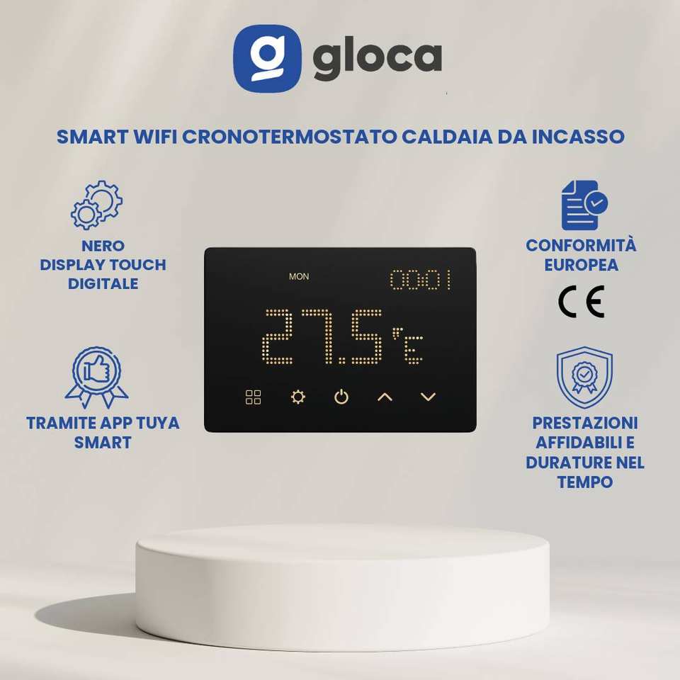 Termostato Smart WiFi Gloca 230V da Parete con Schermo Touch Digitale per il Controllo di Caldaie e Riscaldatori Elettrici