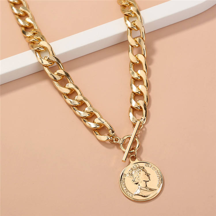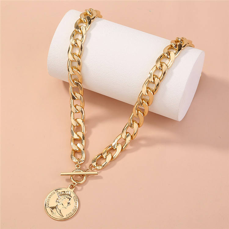 1pcs Glod Hip Hop Necklace Thick Chain Medallion Pendant Necklace For Women And Girls opp bag