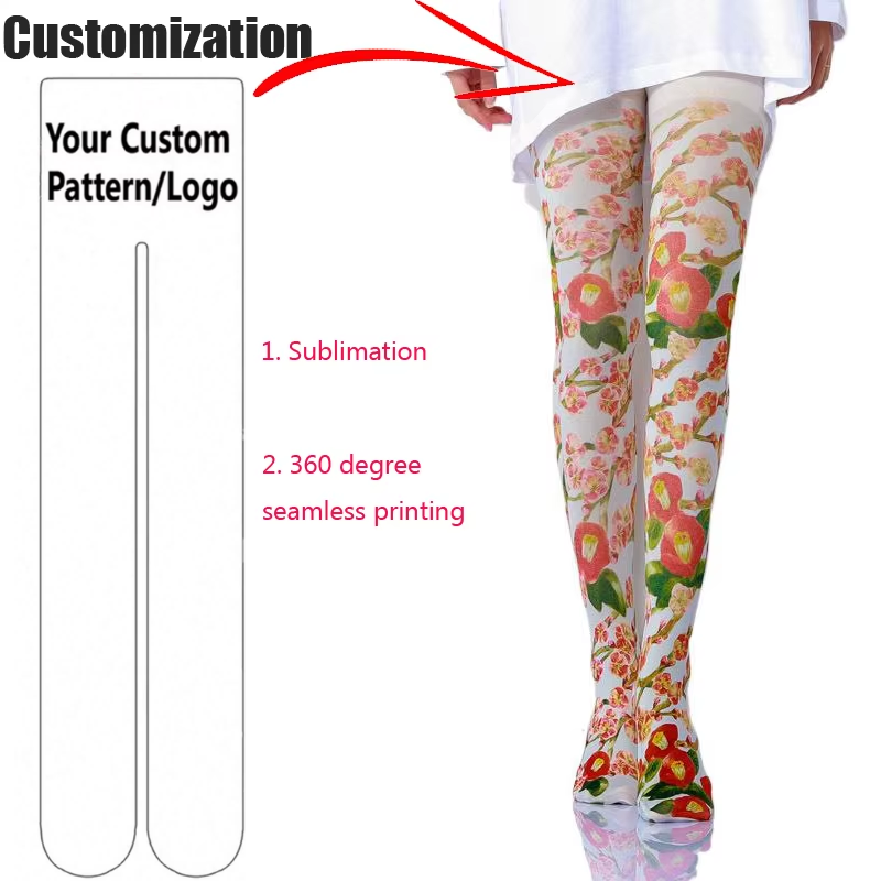 Glory Big Flower Chinese Brightly Painted Custom Printing Pantyhose Orange Girls Tights Regular Plus Size Tight