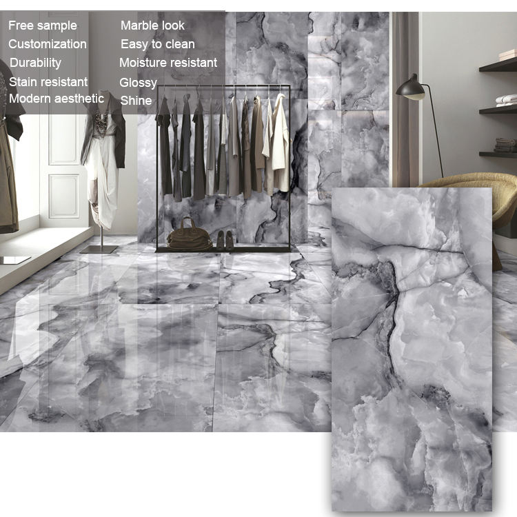 Glossy Finish Big Size Large Format White Porcelain Floor Tile and Marble Golden Glazed Floor Tile