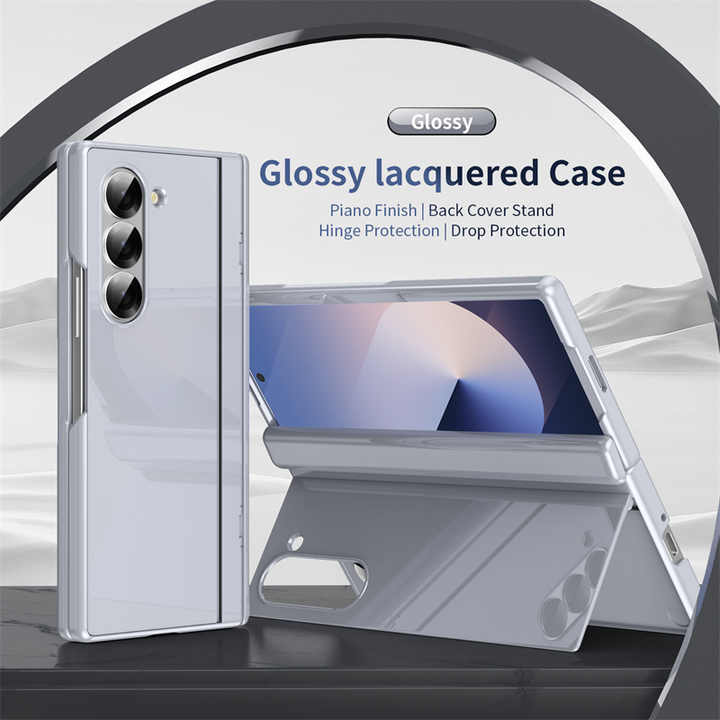 Chiusura a cerniera laccata lucida custodia per cavalletto rigido per Samsung Galaxy Z piega 6 5/piega 3 4 con vetro temperato