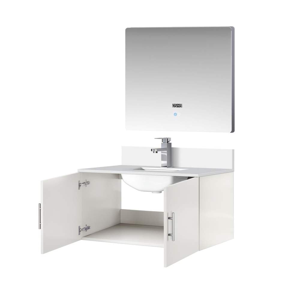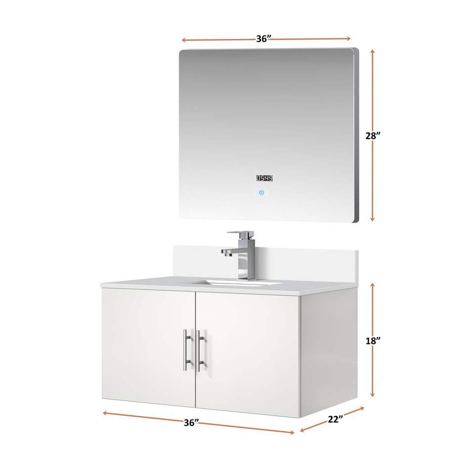 Bianco lucido 36 In. Vanità da bagno con 22 pollici. Piano In marmo coltivato e specchio a LED 36 pollici. Rubinetto Set 22 In. W X 22 In. D