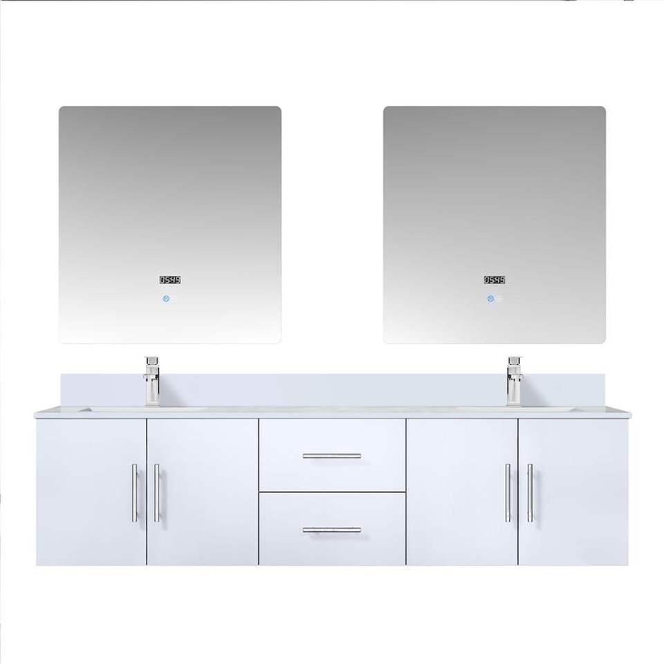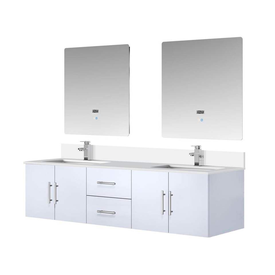 Glossy White 72 In. Double Bath Vanity with 22 In. D White Quartz Top Faucet Set & 30 In. LED Mirrors Bathroom Vanities