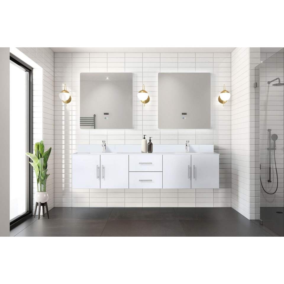 Bianco lucido 80 In. Vanità doppio bagno con 22 In. D piano di quarzo bianco e 30 pollici. Specchietti LED bagno vanità