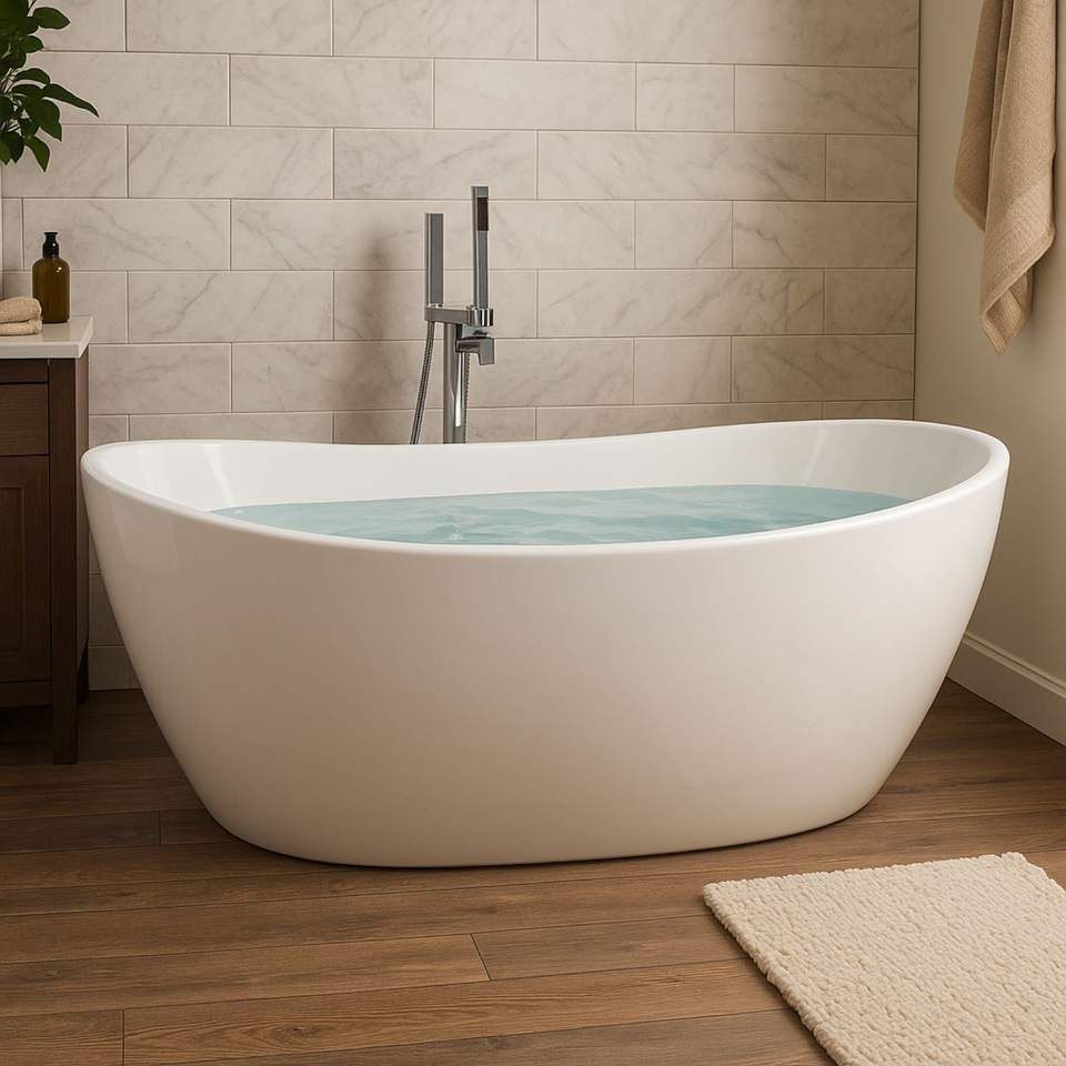 Glossy White Acrylic Oval Freestanding Bathtub Size L170xH68xP80 Pack 1
