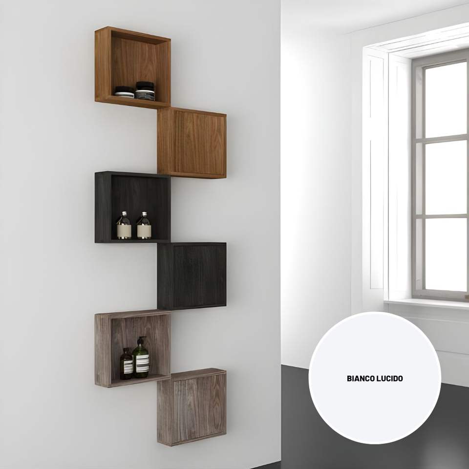 Glossy White Cube Wall Unit for Bathroom or Bedroom Entrance Open Design 34x34x13 cm Pack of 1