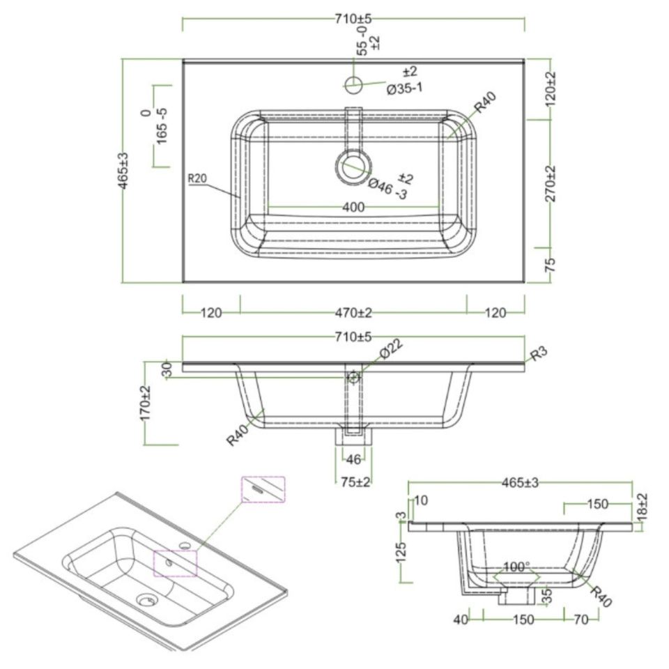 Glossy White Resin Washbasin 61x46x16.5 cm with Built-in 71x46x17 cm Size Pack of 1"