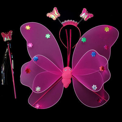 Ali di Farfalla Luminose per Bambine, Decorazione per la Schiena, Giocattoli LED Lampeggianti, Meraviglioso Set Fata dei Fiori con Bacchetta Magica