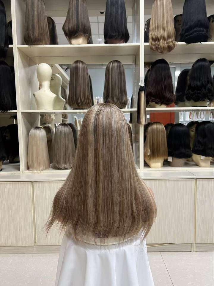 Parrucca Liscia Senza Colla con Frontale in Pizzo HD, 100% Capelli Umani Vergini, Pre-Piumata, Aspetto Naturale per Donne