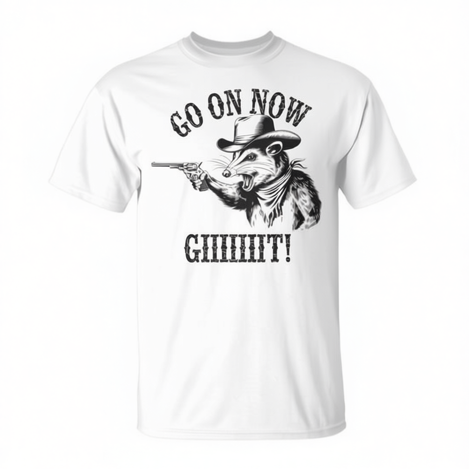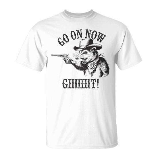 Go On Now Git T-shirt vintage da cowboy Opossum Country Western