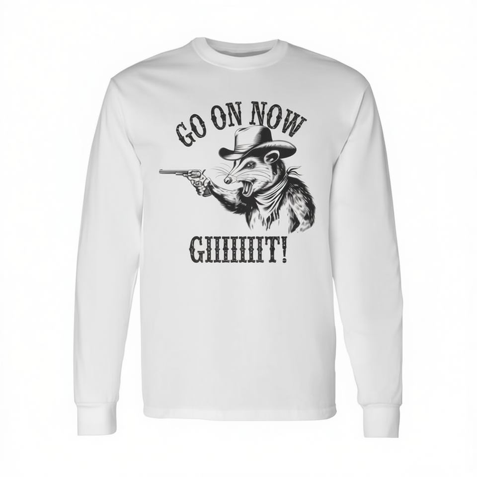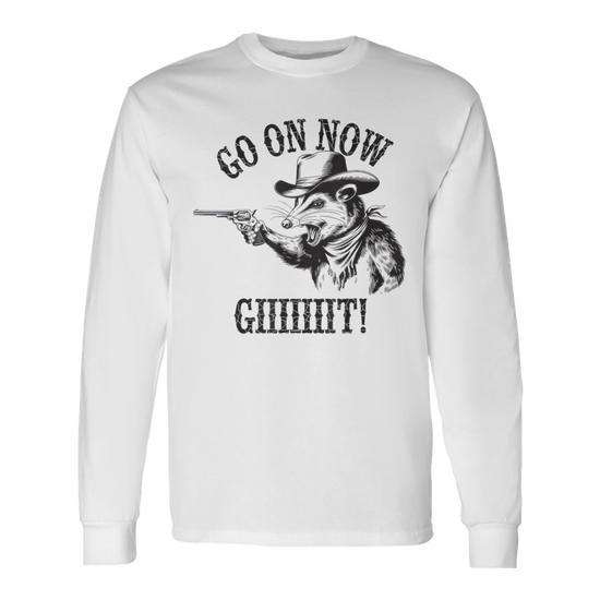 Go On Now Git T-shirt a maniche lunghe vintage Cowboy Opossum Country Western