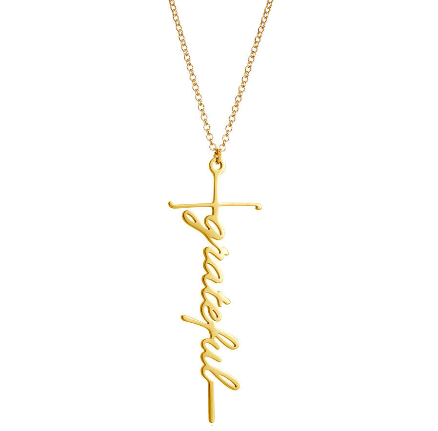 Go Party Cross Faith Necklace Jesus Trust Blessed Grace Godfather Fearless Believe Grateful Letters Stainless Steel Necklace