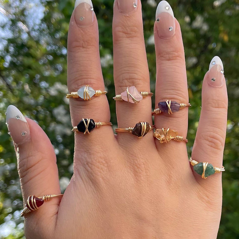 Anello Impilabile Go2boho Placcato Oro con Pietra Naturale Gioielli Etici Fatti a Mano Cristallo Stile Boho Chic Anello da Donna Idea Regalo