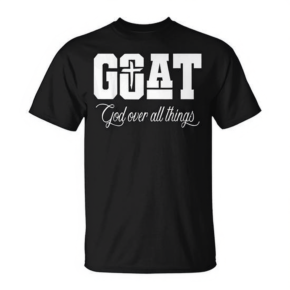 T-shirt con stampa Christian Faith di Goat God Over All Things Design Nero Unisex