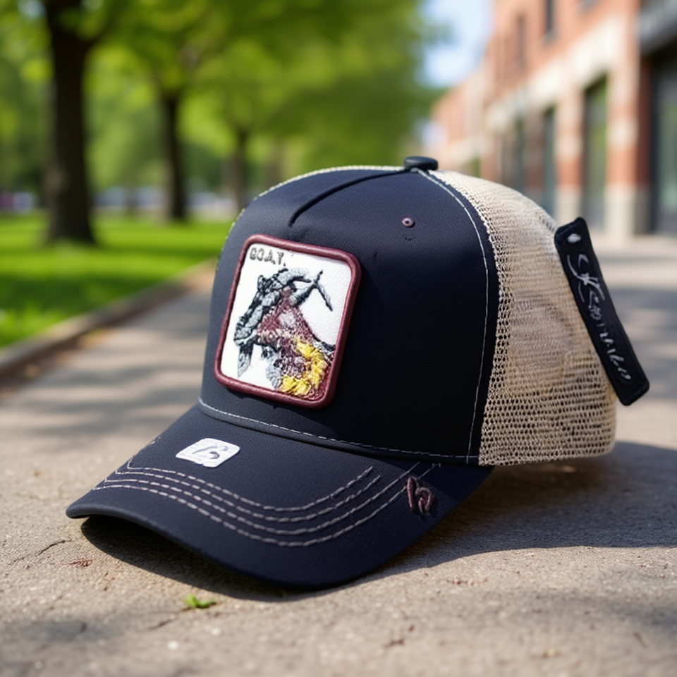 Goat Trucker Hat Mesh Fabric 6-Panel Adjustable Unisex Casual Spring Summer Hat