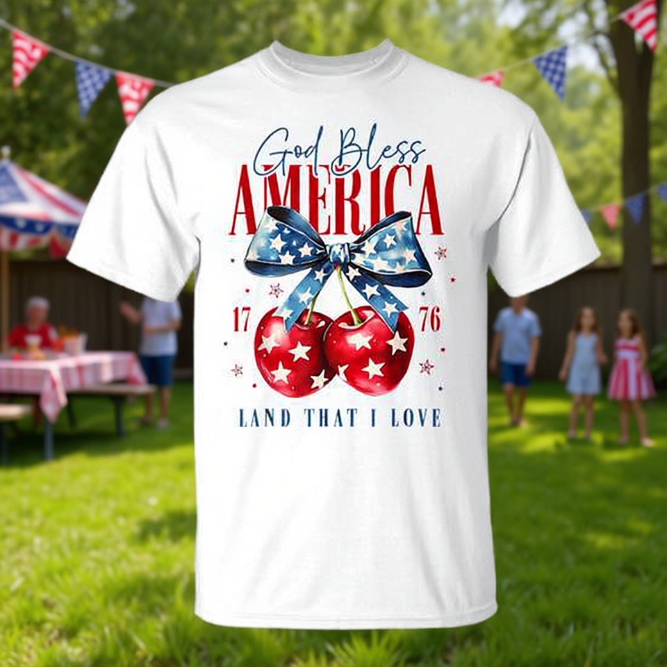 T-shirt patriottica God Bless America Patriotic Cherries per il 4 luglio USA