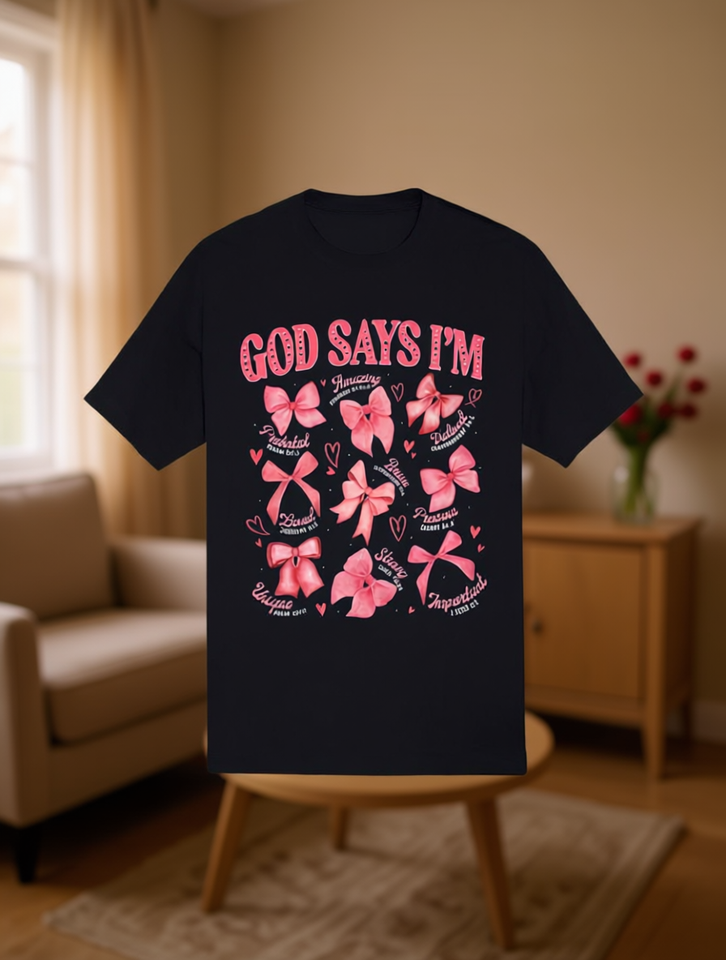 God Says I M Coquette Bow Tee Women's Christian Shirt Short Sleeve Round Neck 100 Cotton Casual Valentine Style