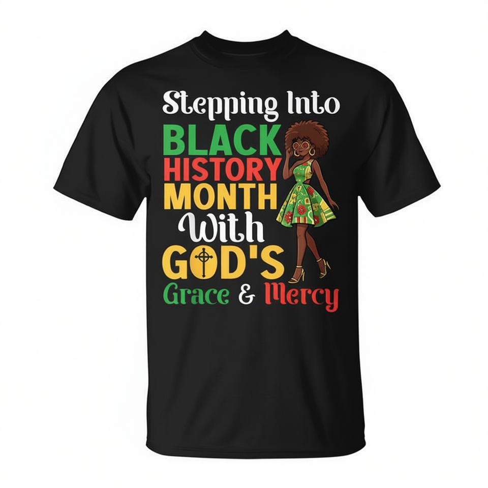 T-shirt da ragazza con la scritta 'God's Grace and Mercy' per il Mese della Storia Nera, abbigliamento promozionale