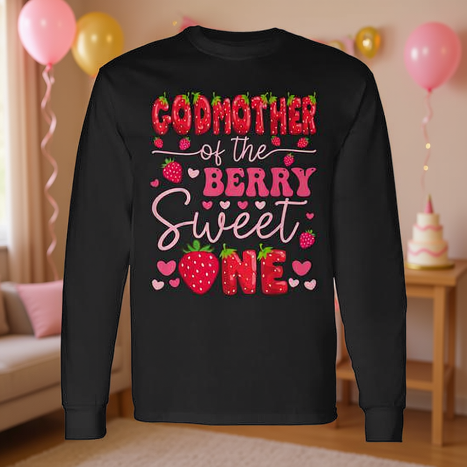 T-shirt a maniche lunghe per il primo compleanno di Godmother Of The Berry Sweet One Strawberry