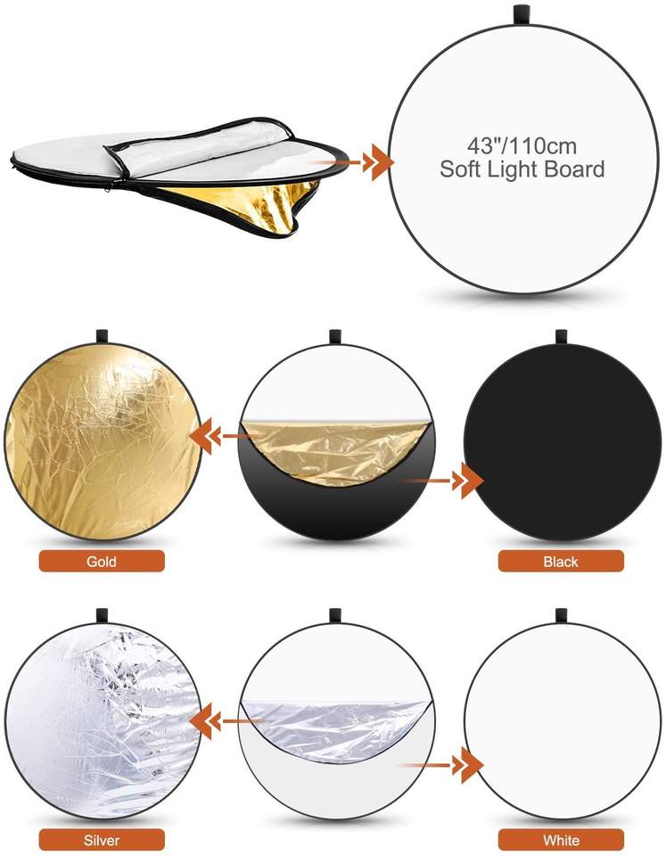 Godox Riflettore Fotografico Pieghevole Multi-Disco 5-in-1 da 43 Pollici 110cm con Borsa per Fotografia in Studio e all'Aperto