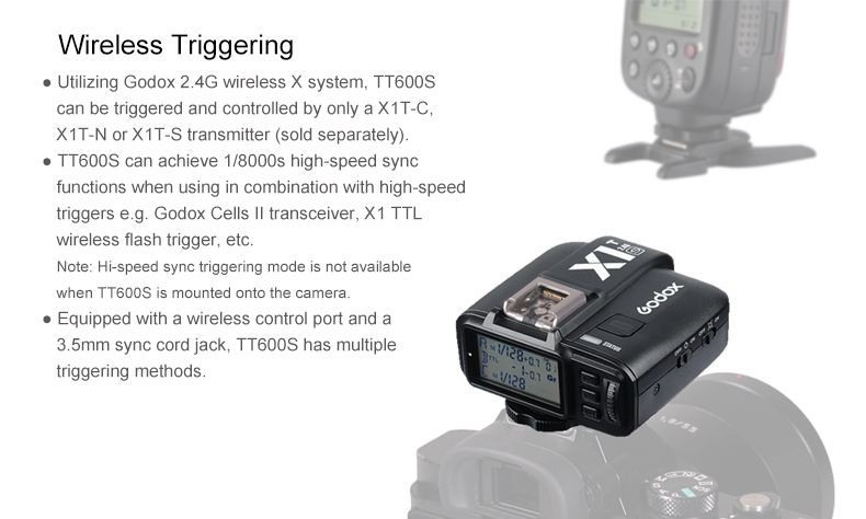 Godox Flash per fotocamera Speedlite TT600 con trasmissione wireless 2,4 GHz integrata per illuminazione fotografica