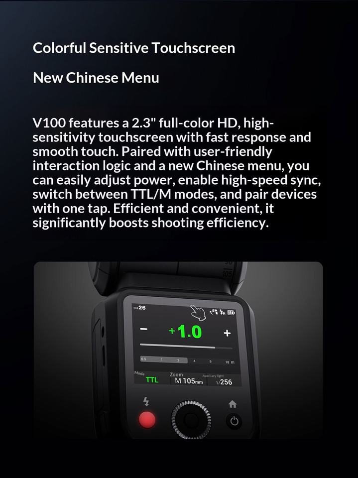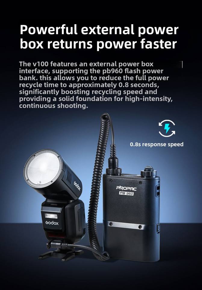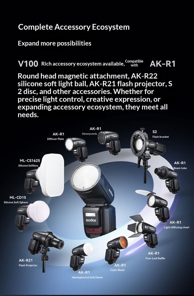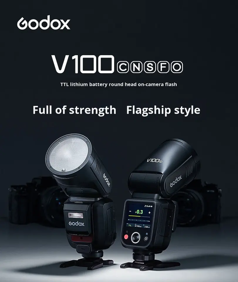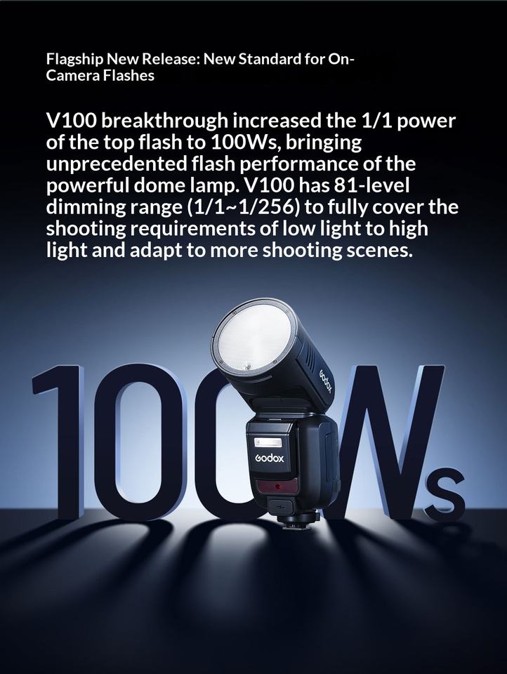 Godox V100 C/N/S/O/P Flash Rotondo in Plastica con Batteria, Luce Flash Potente da 100W, Portatile con Controllo Remoto