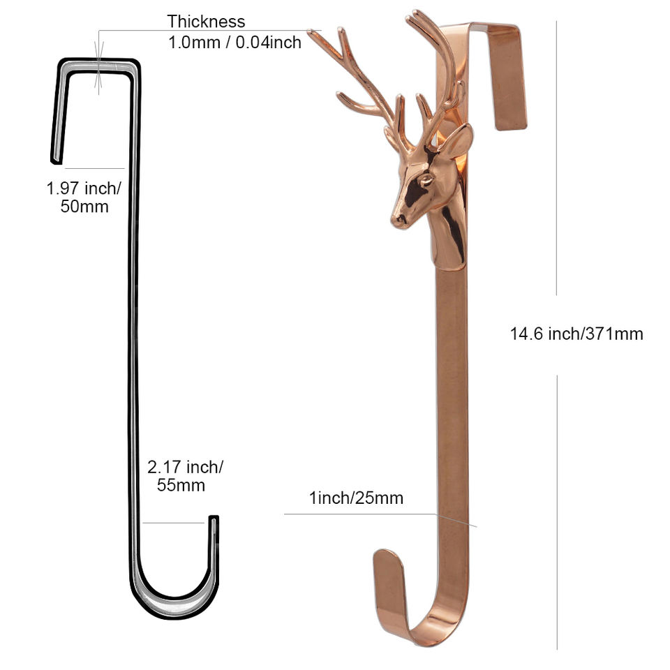 Nome del prodotto:Gancio in metallo oro rosa porta ghirlanda appendiabiti per porta d'ingresso
