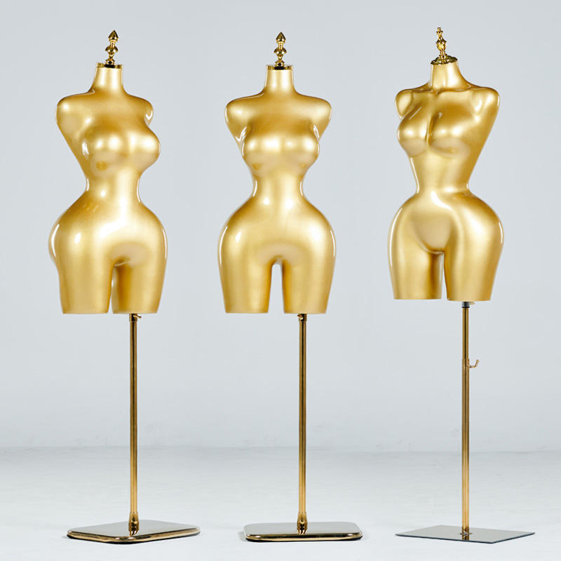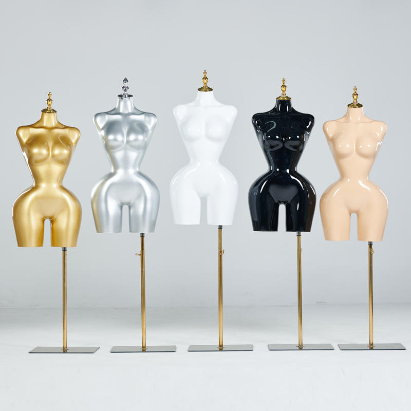 Gold African American Plus Size Female Dress Foam Mannequin Plastic Foam Pin Half Big Ass Mannequin for Clothing Store Display