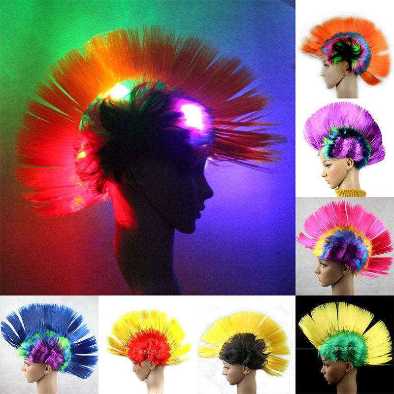 Parrucca Mohican Punk per Feste di Halloween, Accessorio per Capelli in Fibra Proteica Liscia e Ondulata, Nuovo Design Gold Bell 2026