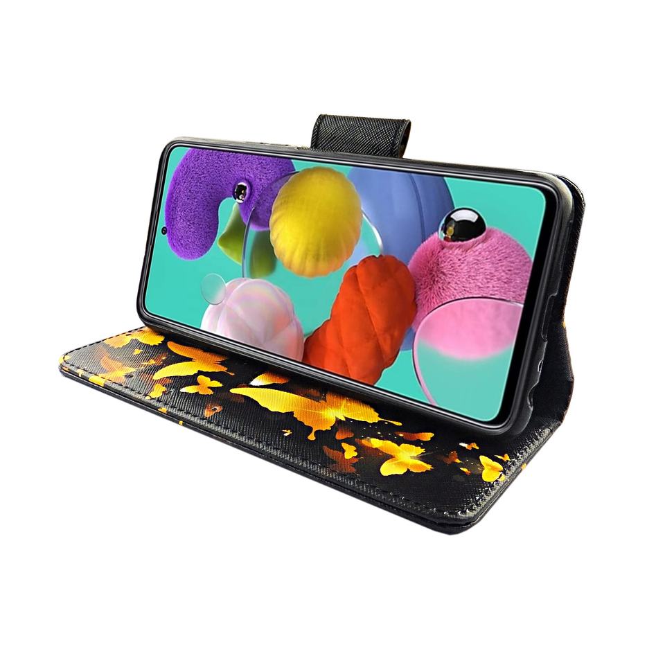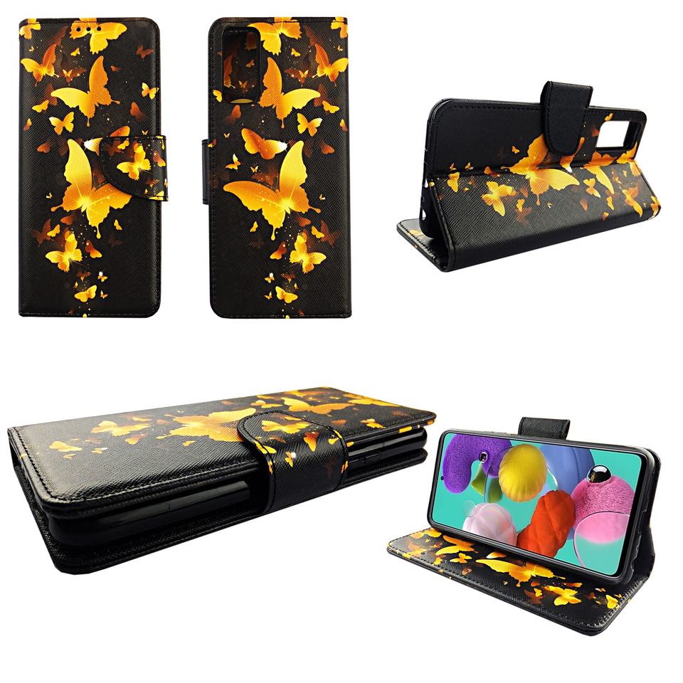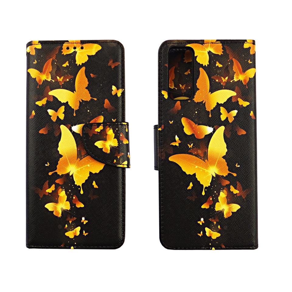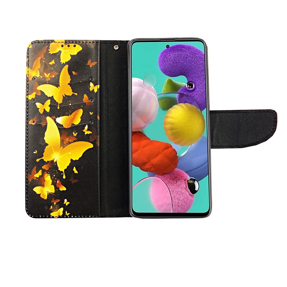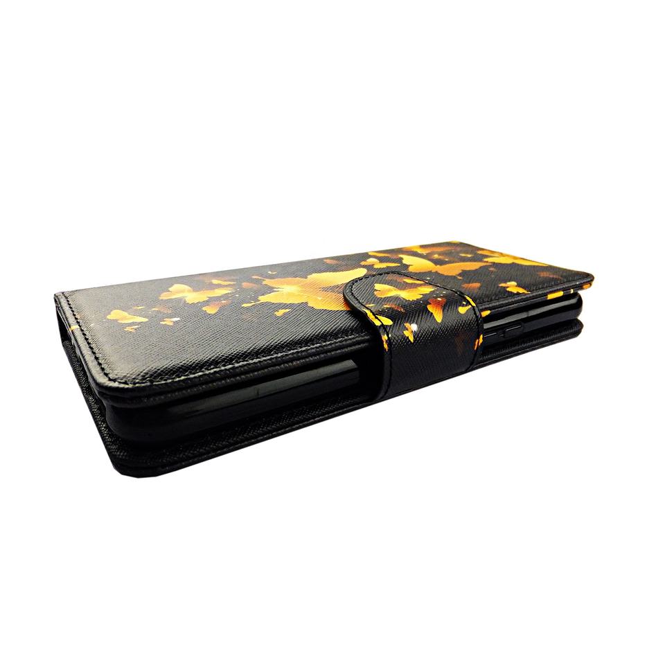 Custodia a Portafoglio in PU+TPU con Farfalla Dorata e Funzione Porta Carte per iPhone 14 Pro e Samsung A20 da Donna