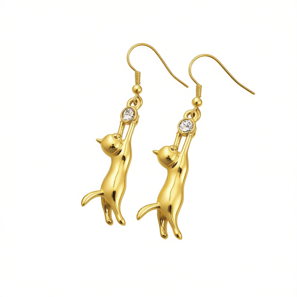 Orecchini pendenti a forma di gatto dorato con cristalli e strass incastonati, per donna, alla moda, graziosi orecchini pendenti a forma di animale, idea regalo, gioielli.